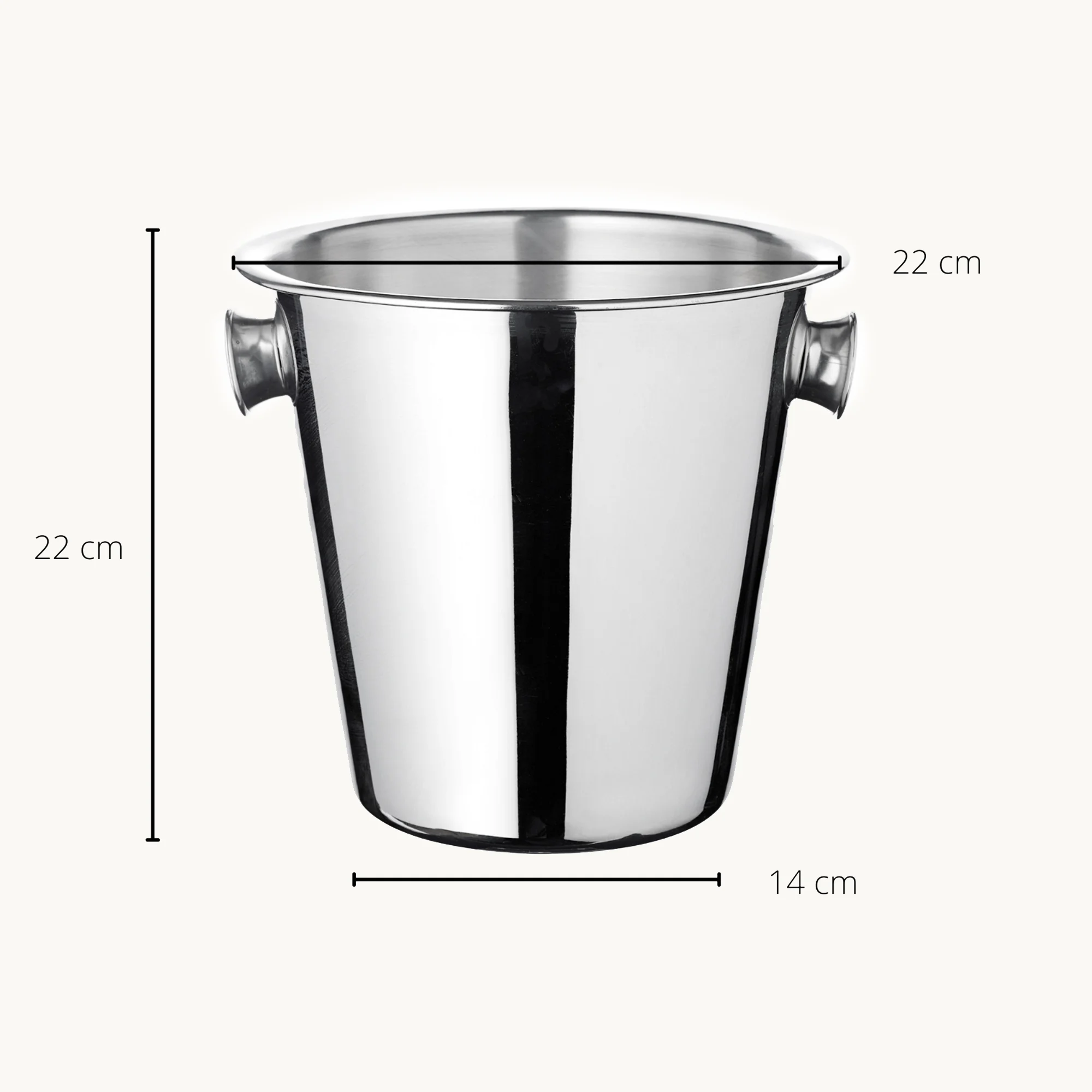 The Joey Wine Cooler is crafted from high-quality stainless steel and features a luxurious silver high-gloss finish. With a diameter and height of 22 cm, it's perfectly suited for standard wine and sparkling wine bottles. Thanks to its sturdy handles, it's easy to move, even when filled with ice. Joey is not only beautiful but also built to last for years.