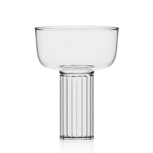 The Cup Clear Liberta is crafted from clear glass, hand-blown and subtly flame-finished, a technique that creates a light, elegant finish and a durable structure. The glass is 12 cm high and has a generous 9.5 cm diameter, making it a striking addition to the table setting and practical to use. The ribbed texture adds character to the design and provides a comfortable grip, while the clean lines perfectly complement the modern luxury style.