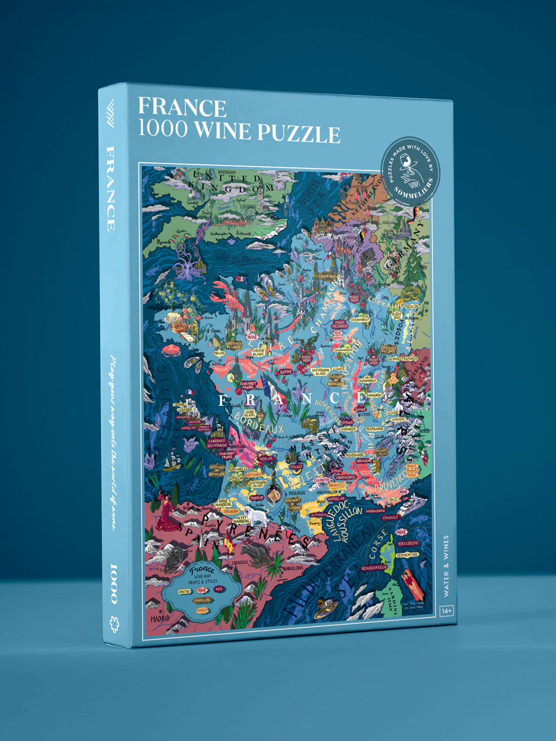 The Water & Wines Wine Puzzle – France is a stylish 1000-piece jigsaw puzzle that brings France's rich wine culture to life piece by piece. Discover France in a unique, educational way you've never experienced before: at the dining table among the puzzle pieces. Discover region by region, grape by grape, the Bourdeaux, Burgundy, Champagne, and much more. This Water & Wines Wine Puzzle – France immerses you in the rich traditions and flavors of the world's most iconic wine country.