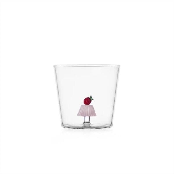 De Ichendorf Milano Pâtisserie – Tumbler Framboos Charlotte is het soort glas dat je tafel nét dat beetje extra geeft, zonder dat je hoeft te doen alsof je een complete high-tea aan het hosten bent. In het midden van de tumbler staat een met de hand gevormde framboos charlotte, een taartje gemaakt van pudding. Het taartje is strak vormgegeven, heerlijk herkenbaar en precies klein genoeg om geen trek van te krijgen. Het is een vrolijk en functioneel drinkglas dat universeel te gebruiken is voor veel verschillende dranken.