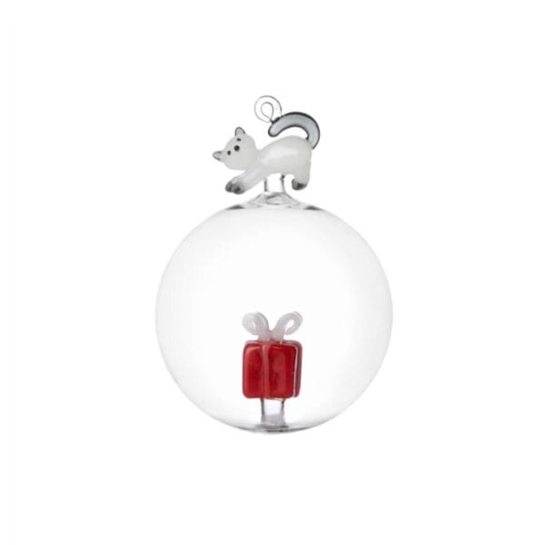 De Ichendorf Milano Tabby Cat – Kerstbal met Cadeau & Witte Kat is volledig met de hand vervaardigd en zorgvuldig met de vlam gemodelleerd, waardoor elk exemplaar een subtiele eigenheid heeft. De kleurencombinatie van transparant, rood, wit en rook maakt het ornament veelzijdig en eenvoudig te combineren met andere kerstballen. Deze kerstbal past in een klassieke, Scandinavische, moderne, kleurrijke of minimalistische kerstboom. Deze Witte Kat voelt zich overal thuis en is klaar om het cadeautje uit te pakken.