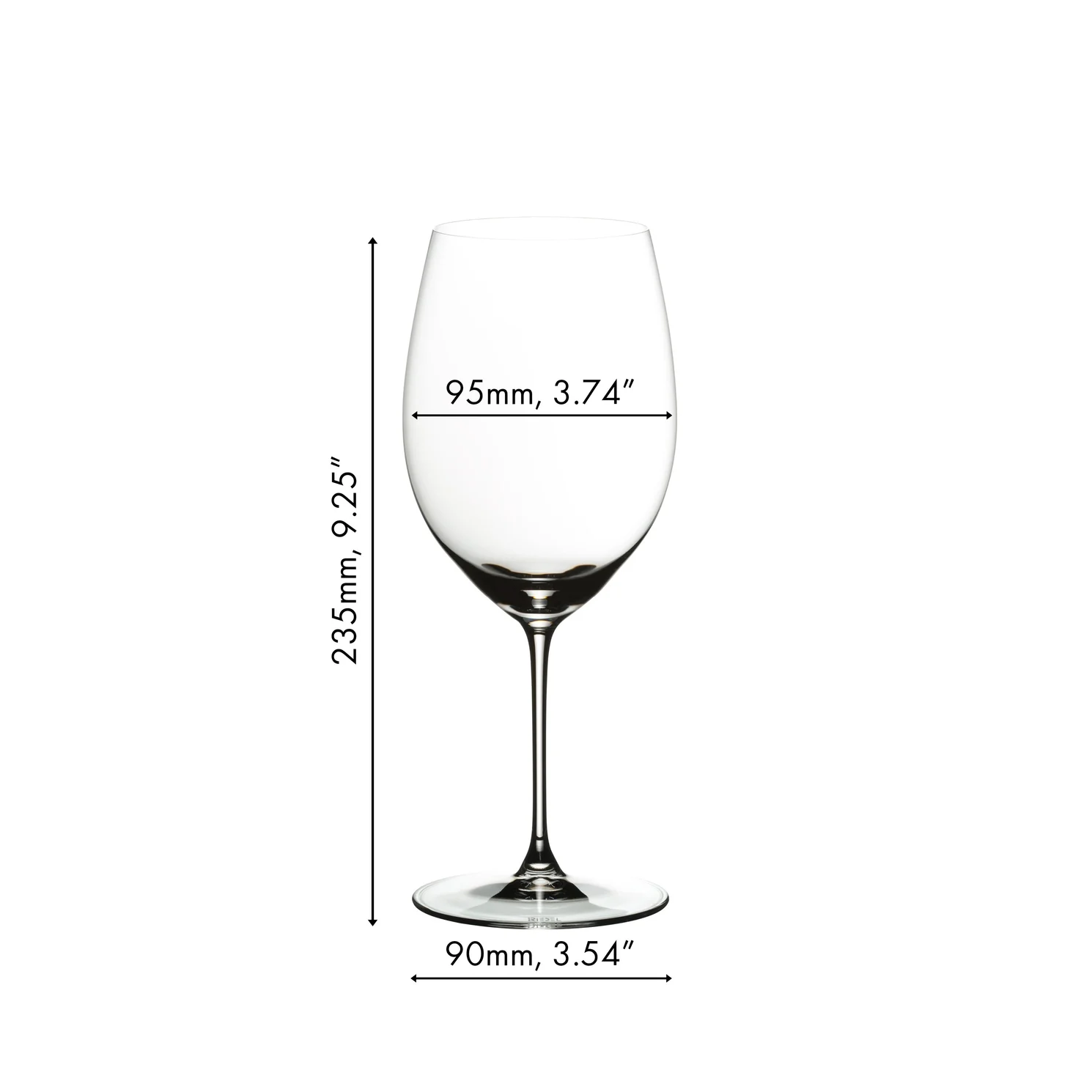 Met een inhoud van 667 ml, een hoogte van 23,5 centimeter en een maximale diameter van 9,5 centimeter heeft het glas een ruim maar elegant silhouet dat gecontroleerde beluchting mogelijk maakt. De verfijnde vormgeving ondersteunt de overgang van de wijn naar het midden van de tong, waar structuur, fruit en zuren samenkomen. Het heldere kristalglas laat kleur en viscositeit van de wijn volledig tot hun recht komen en draagt bij aan een zuivere, professionele presentatie.